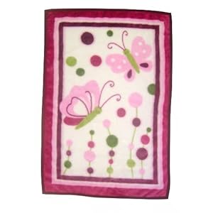 Product Description : The Raspberry Swirl is a fun contemporary design of dots, circles, swirls and butterflies in raspberry, cherry, plum and lime. Soft suede fabrics, shiny satin embroidery, velours and fine wale corduroy coordinate together in this stylish collection. Warm and Cozy Blanket measures 30" x 43".